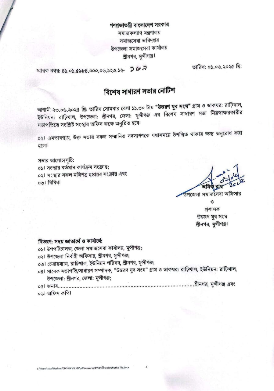 | ৩ | উত্তরন যুব সংঘের সাধারন সভার নোটিশ | | ০১-০৬-২০২৫ | দেখুন | |